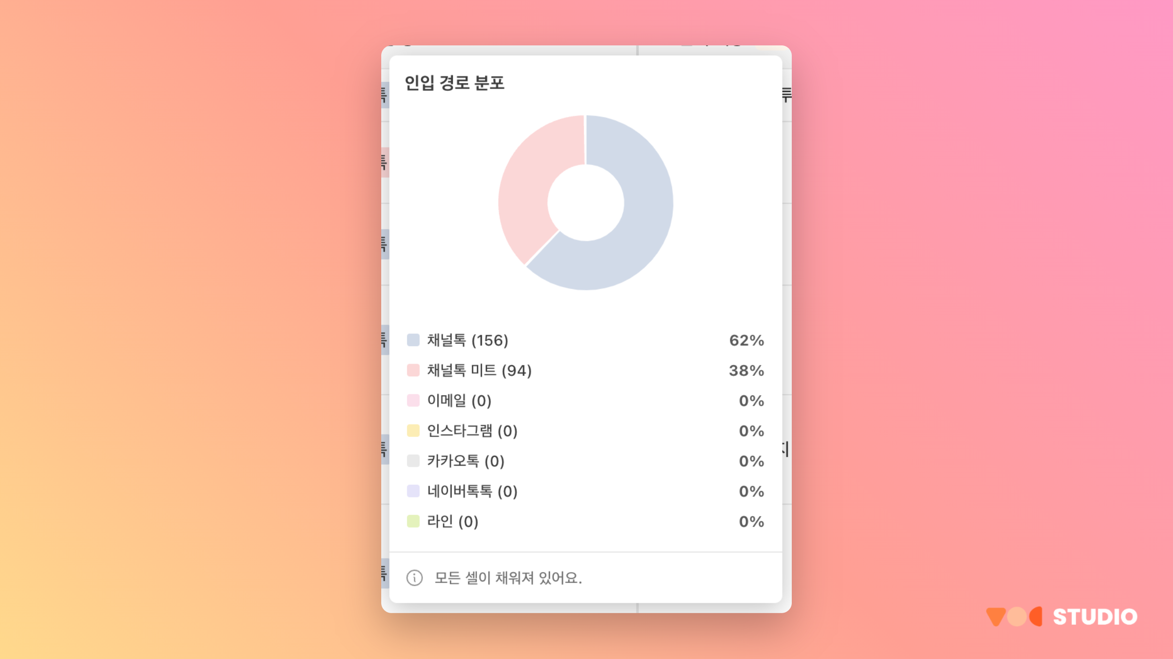 담당자, 상담 인입 경로, 상담 상태 등의 분포를 빠르게 확인해보세요!