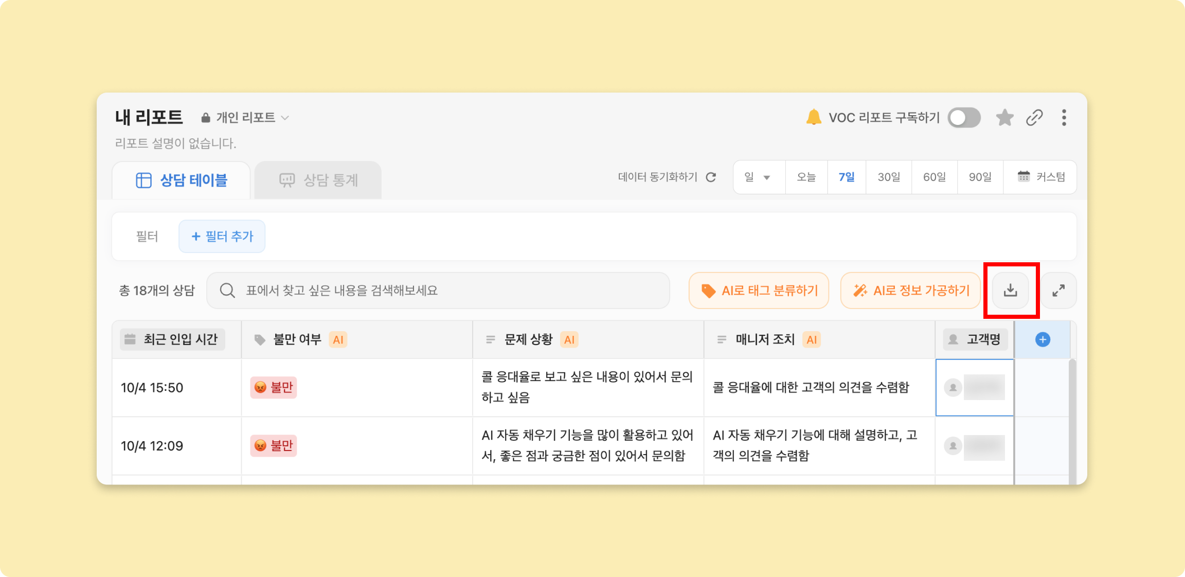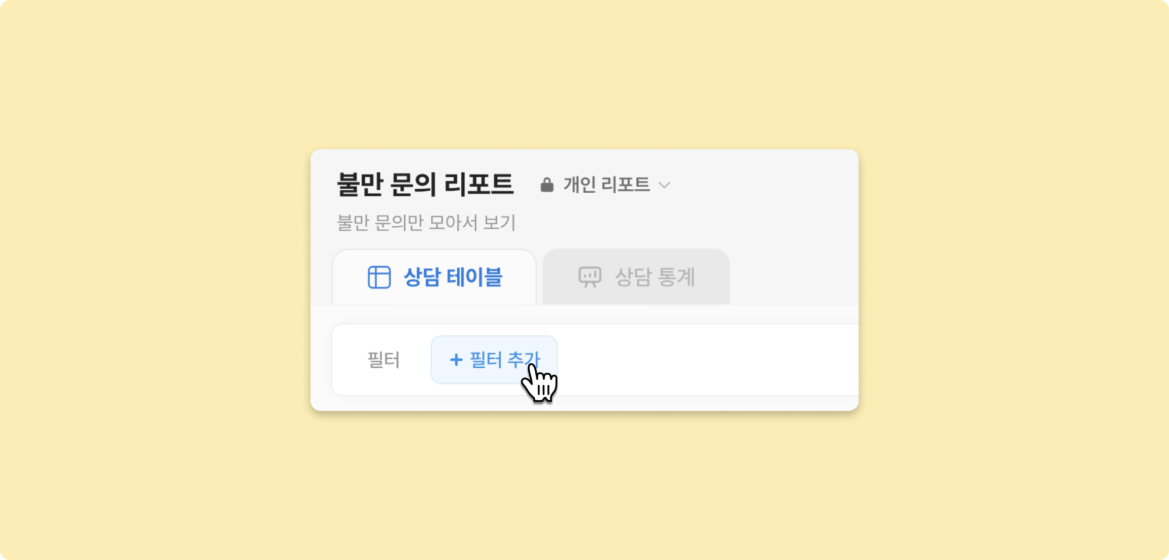 여기서는 불만 문의만 모아놓은 리포트를 만드는 방법을 알려드릴게요. 원하는 조건을 잘 생각해둔 뒤 그대로 따라하면 어떤 리포트든 뚝딱 만들 수 있어요.