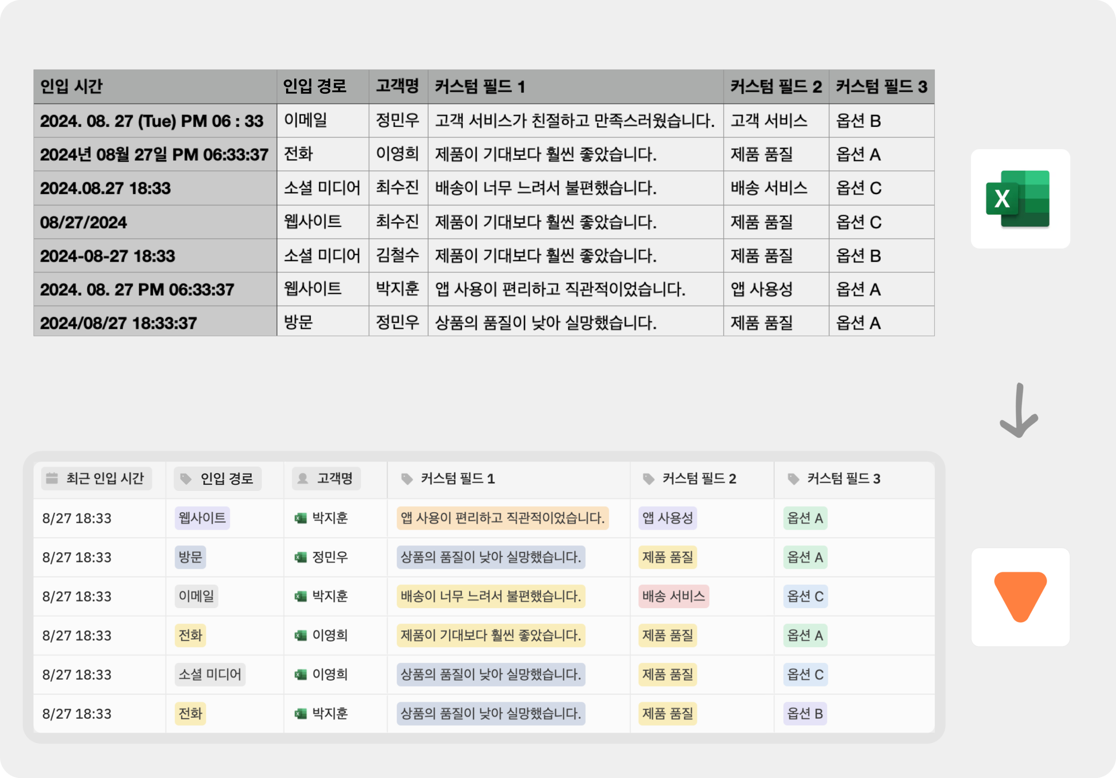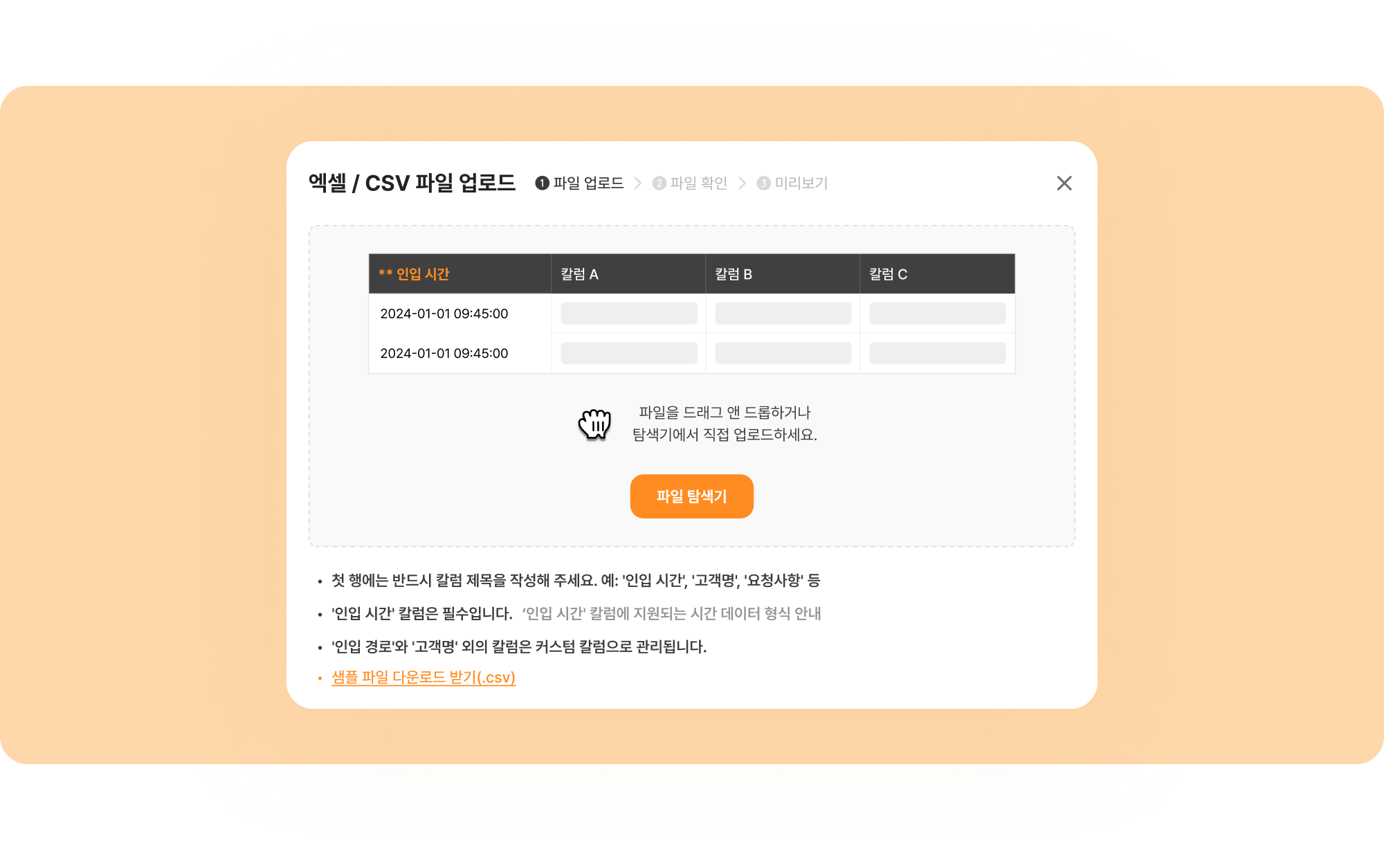 엑셀과 CSV 형식의 파일을 모두 지원해요.