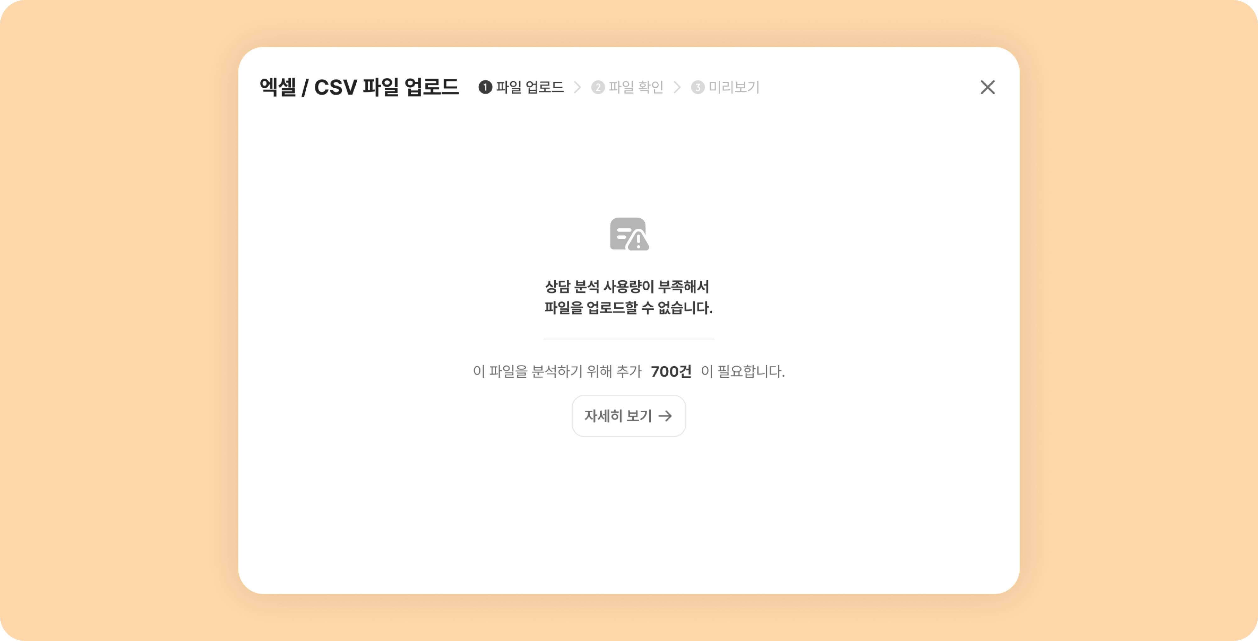 엑셀 파일의 행의 수에 따라 상담 분석 사용량이 차감됩니다.