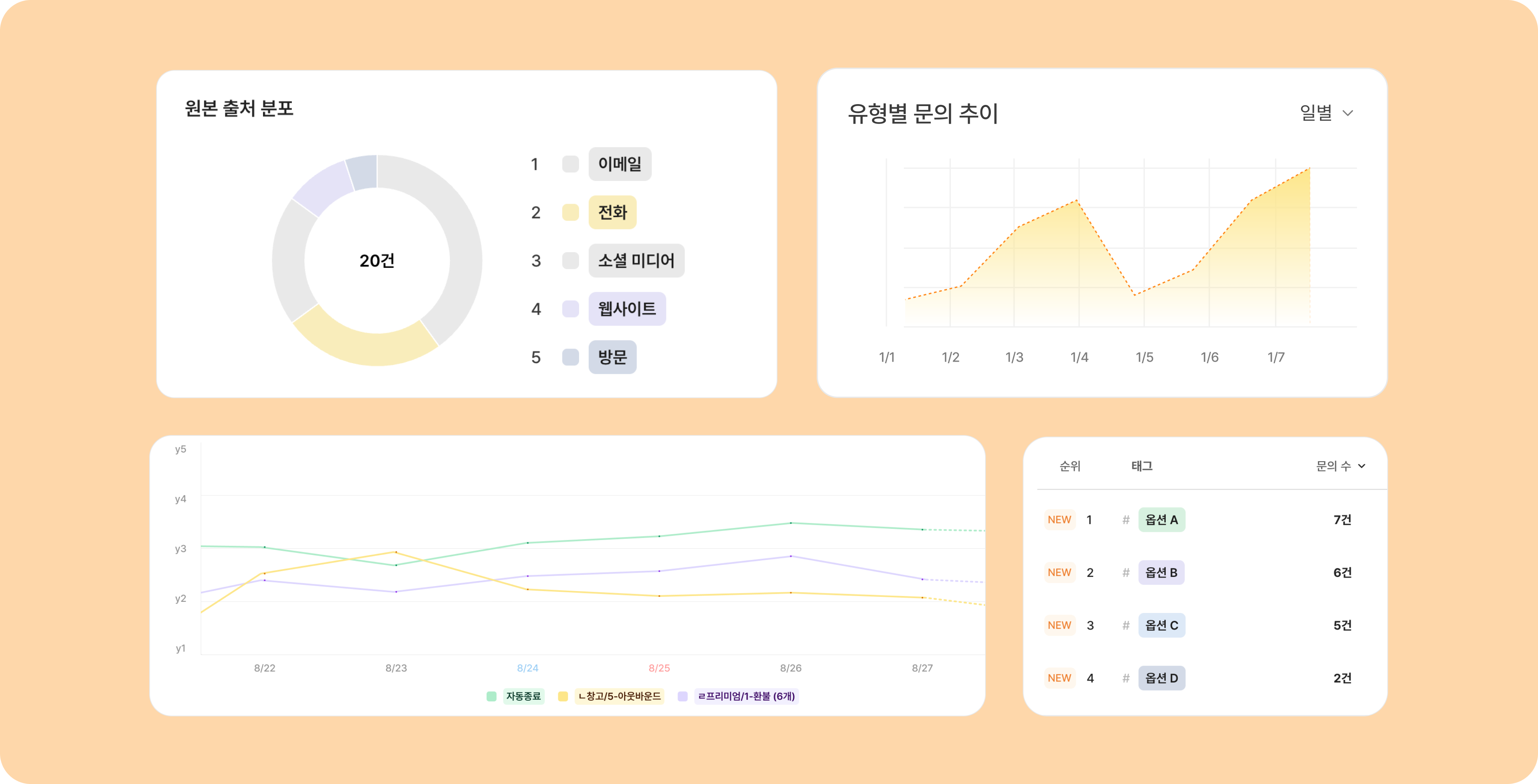 AI로 분류한 태그 정보를 활용해서 바로 추이나 비율 등의 통계를 확인할 수 있어요.