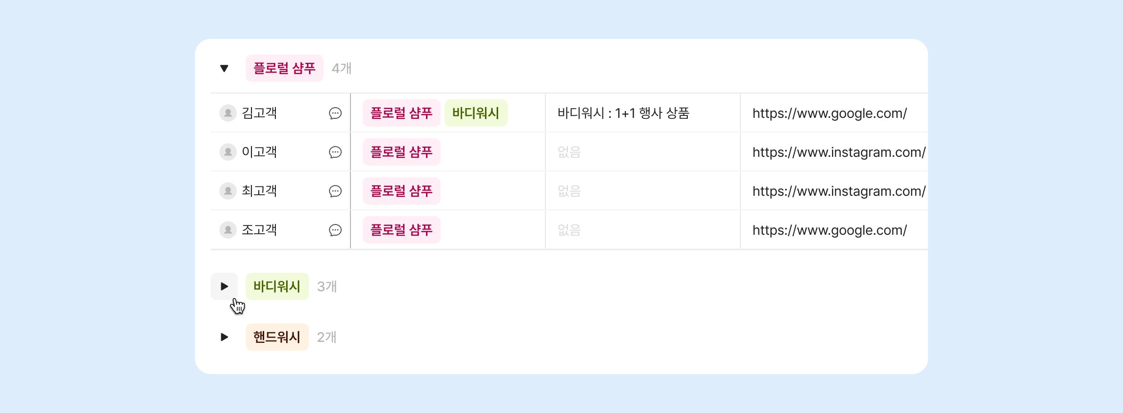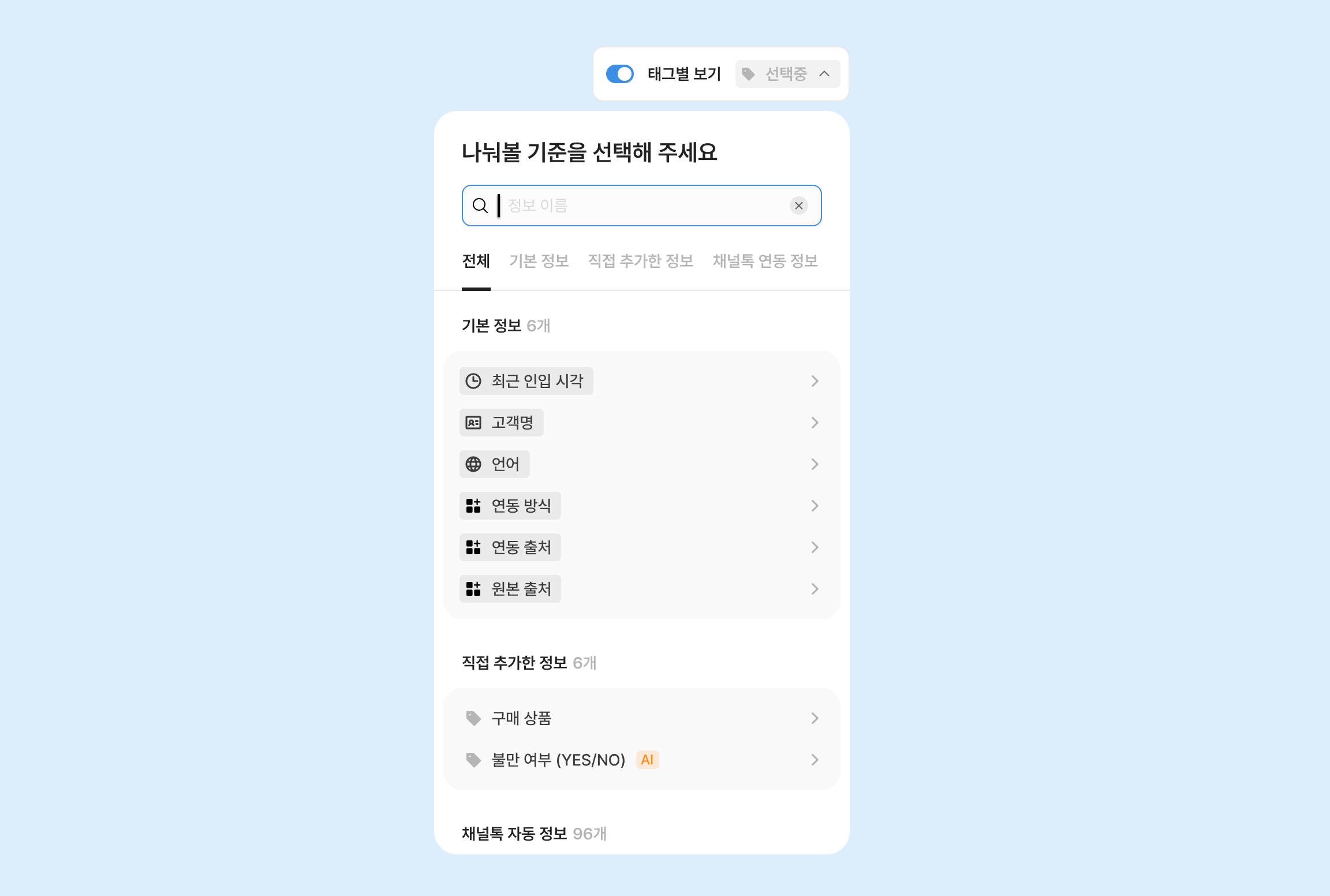 기준이 될 태그형 칼럼을 선택하면 그 칼럼에 적힌 태그값에 따라 상담들이 분리될 거예요.