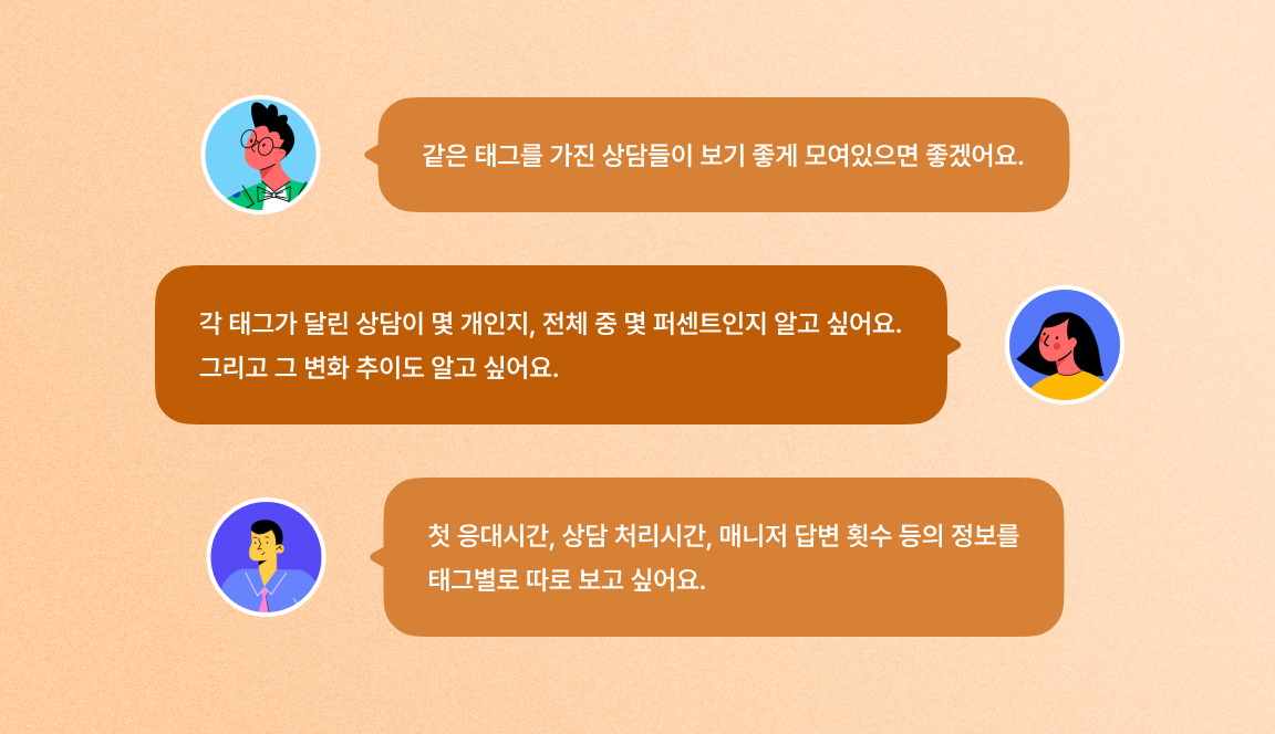 그런데, 상담 목록을 나눠보는 것 뿐만 아니라 태그 그룹들의 통계도 보고 싶으시다고요?