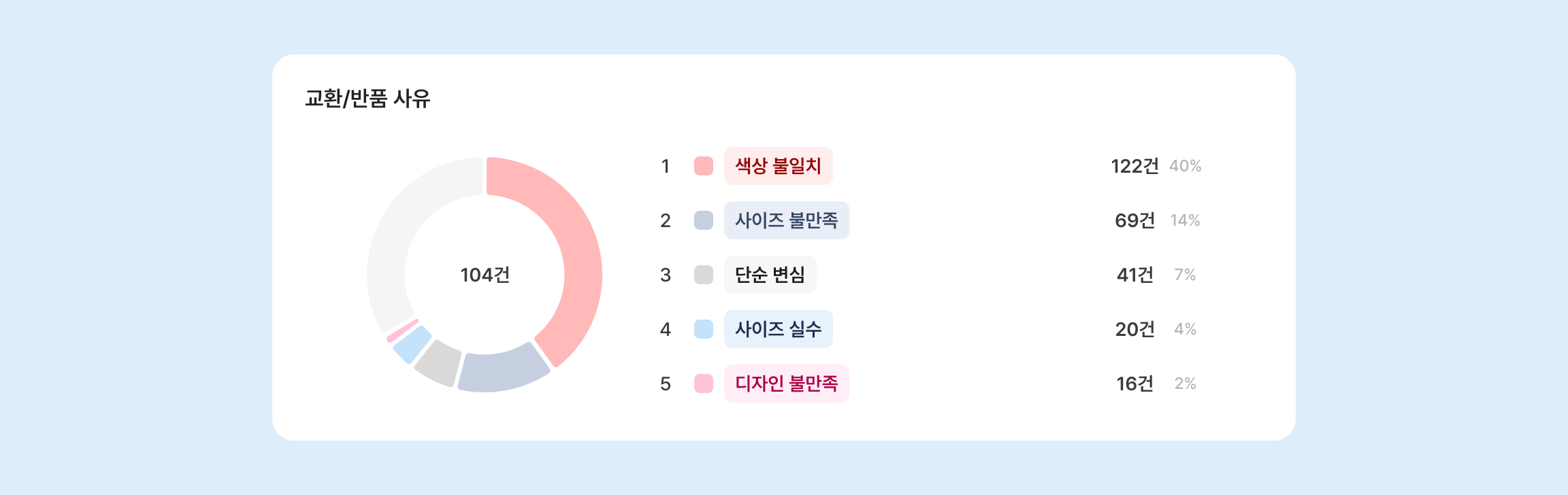 가장 많은 비중을 차지하는 교환 반품 사유, 혹은 최근 급증한 교환 반품 이유가 무엇인지