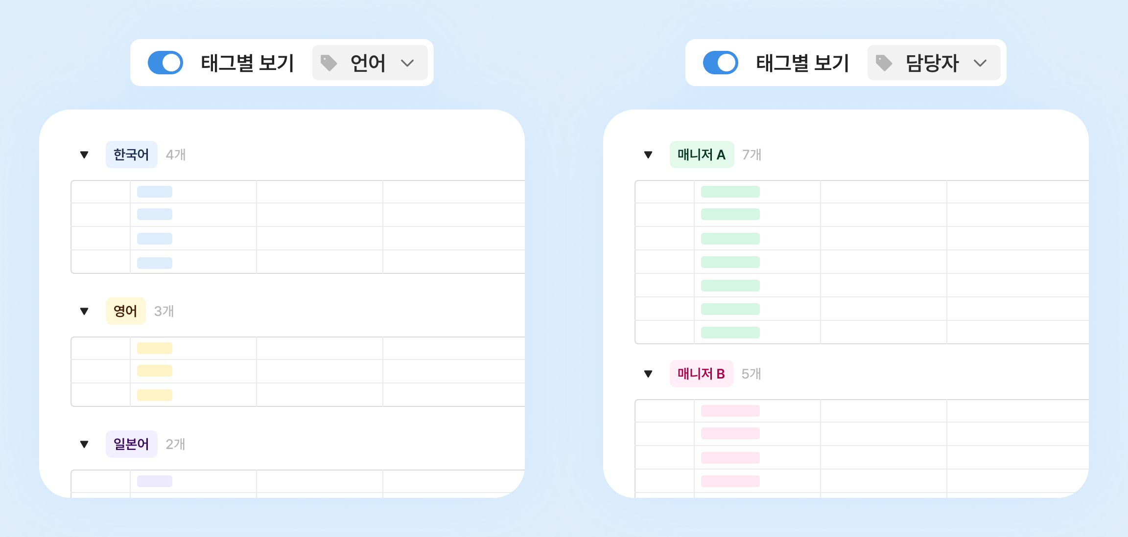 [태그별 보기]를 통해 테이블을 깔끔히 정리해 볼 수 있게 되었어요.