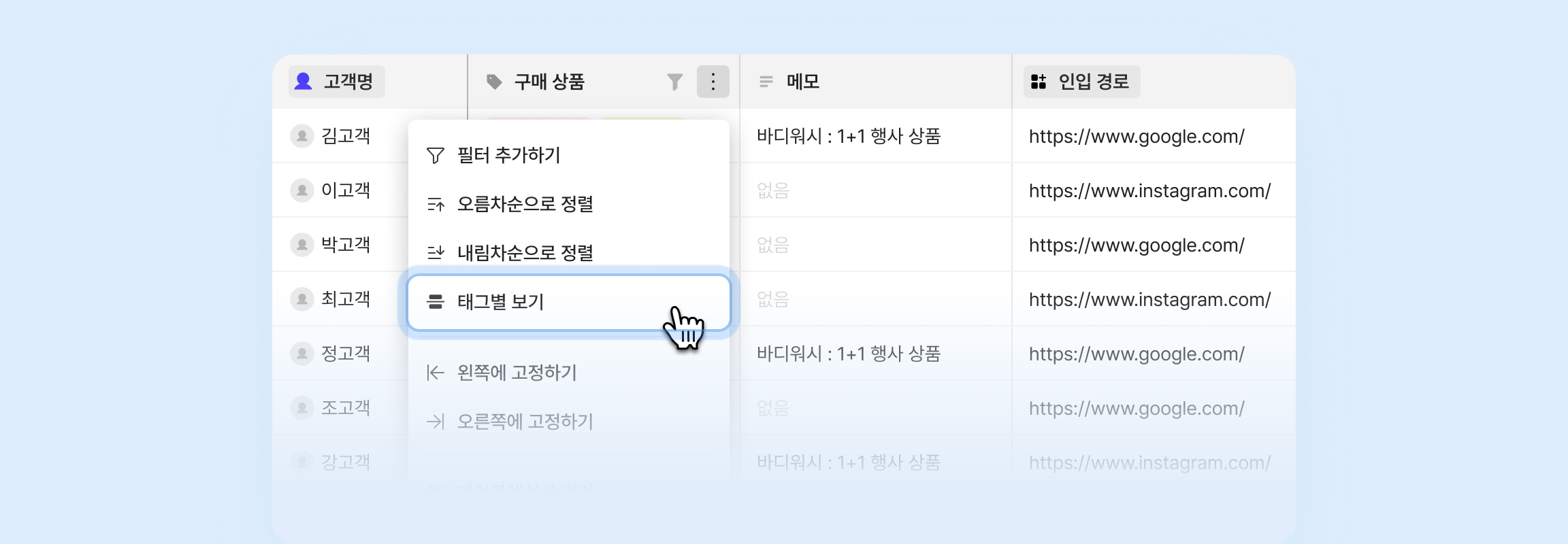 혹은, 테이블에 추가된 태그형 칼럼의 제목을 클릭해보세요.