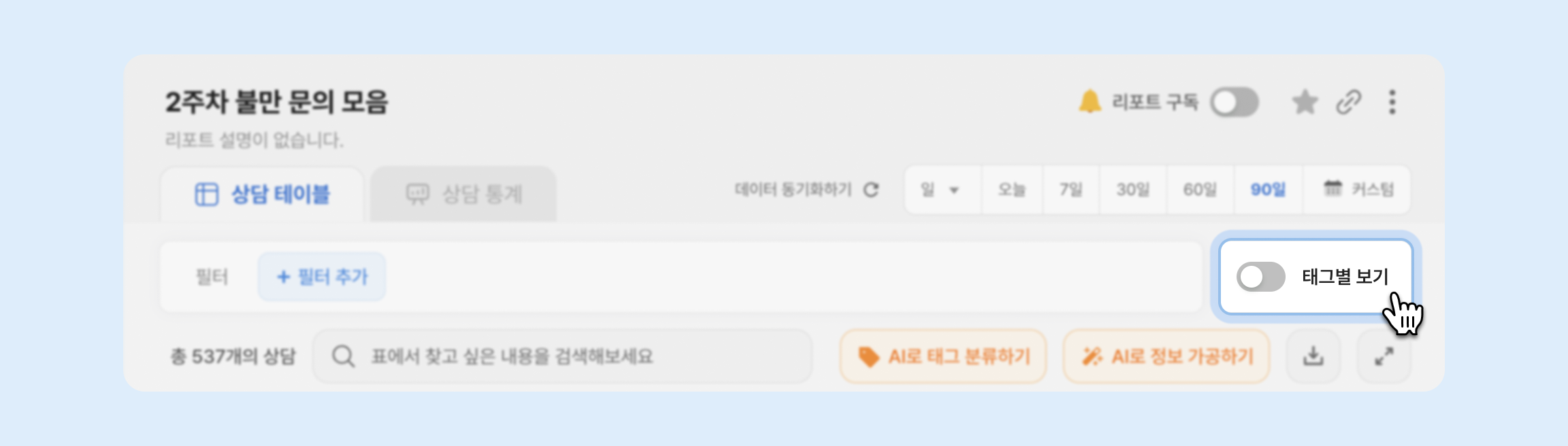 리포트의 오른쪽 윗 부분, [태그별 보기] 버튼을 눌러 스위치를 켜주세요.