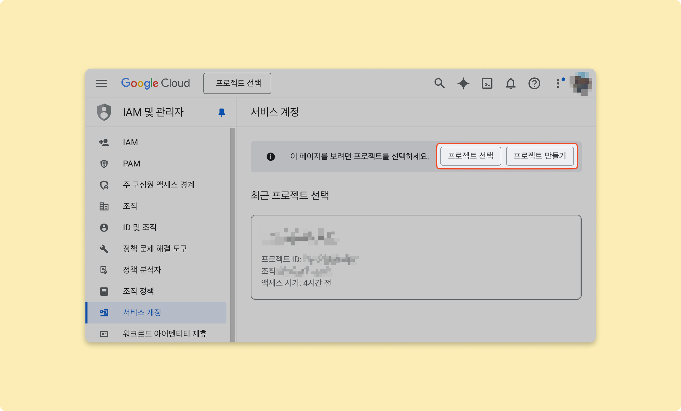 프로젝트 선택을 클릭해 만들어진 프로젝트를 선택하시거나,프로젝트 만들기를 클릭해 새 프로젝트를 만들어주세요.