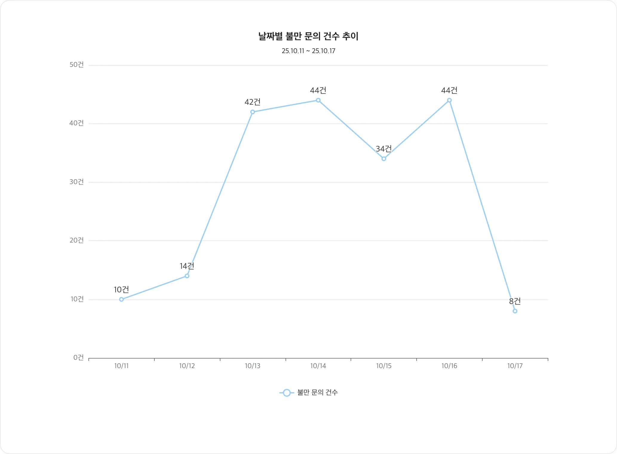 차트 내용: 날짜별 불만 문의 건수 추이